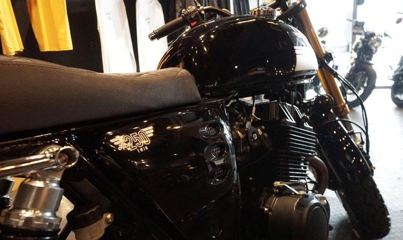 semakin aman. Motor ini diberikan skema sentuhan garis garis warna untuk menambah karakternya dengan detail menarik pada tangki dan cover body samping. Dilengkapi dengan Corsa Tire untuk ban standar unitnya, Cleveland Cyclewerks Ace 250 – Twin ini siap meroda tanpa mengesampingkan gaya di jalanan.