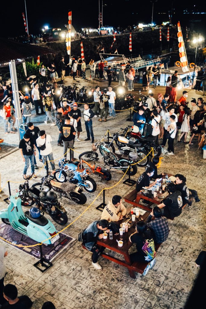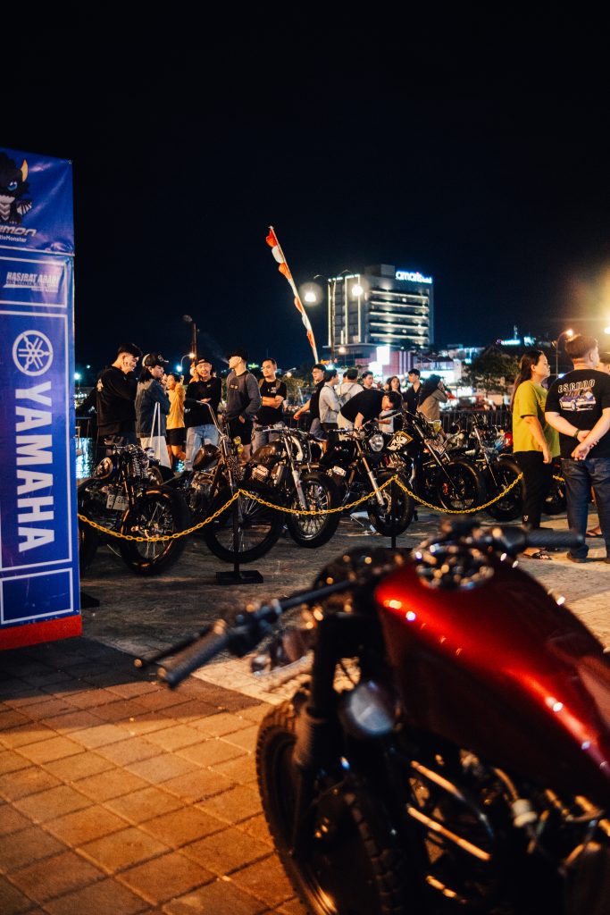 Ratusan motor kustom berbagai aliran — mulai dari chopper, bobber, café racer, hingga tracker — memadati area venue. Tak ketinggalan, deretan mobil klasik dan hot rod ikut menambah nuansa retro sekaligus menjadi daya tarik utama bagi para pengunjung.