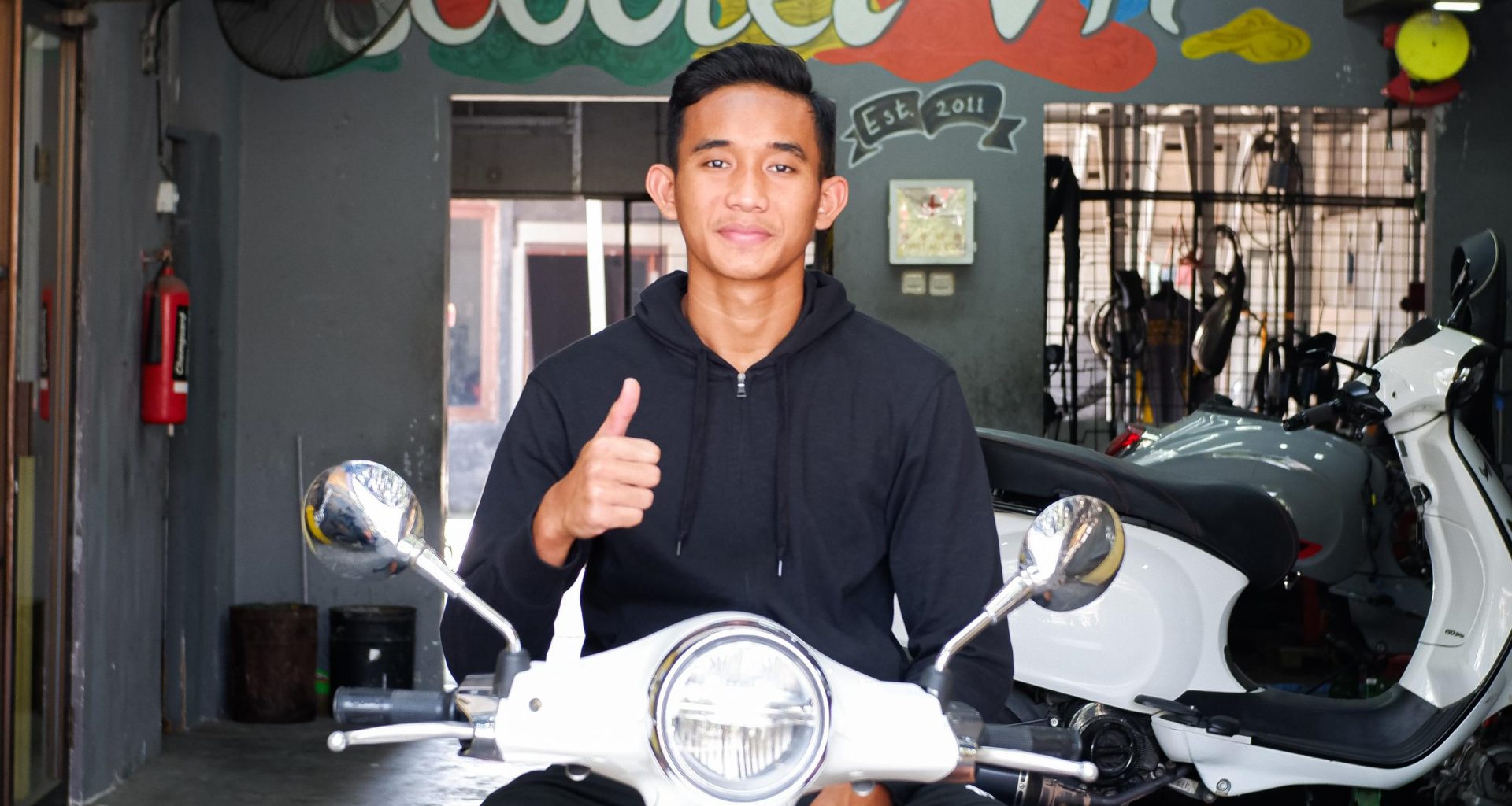 Makanya Rizky Ridho percaya ketika Vespa kesayangan, di bawa ke Scooter VIP untuk diganti peranti pengereman.