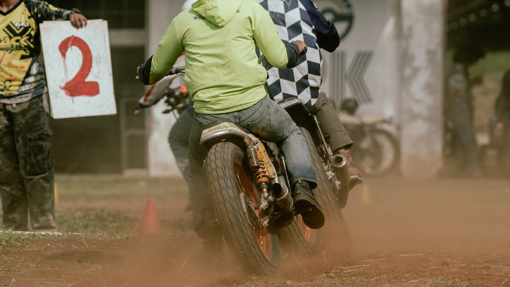 Setelah sesi latihan bebas dan coaching, acara ditutup dengan fun race tipis-tipis. Balapan dibagi dua kelas: mesin tegak dan mesin tidur. Walau bukan balapan serius, serunya dapet banget! Banyak peserta yang justru baru pertama kali merasakan atmosfer balapan flattrack di trek beneran.